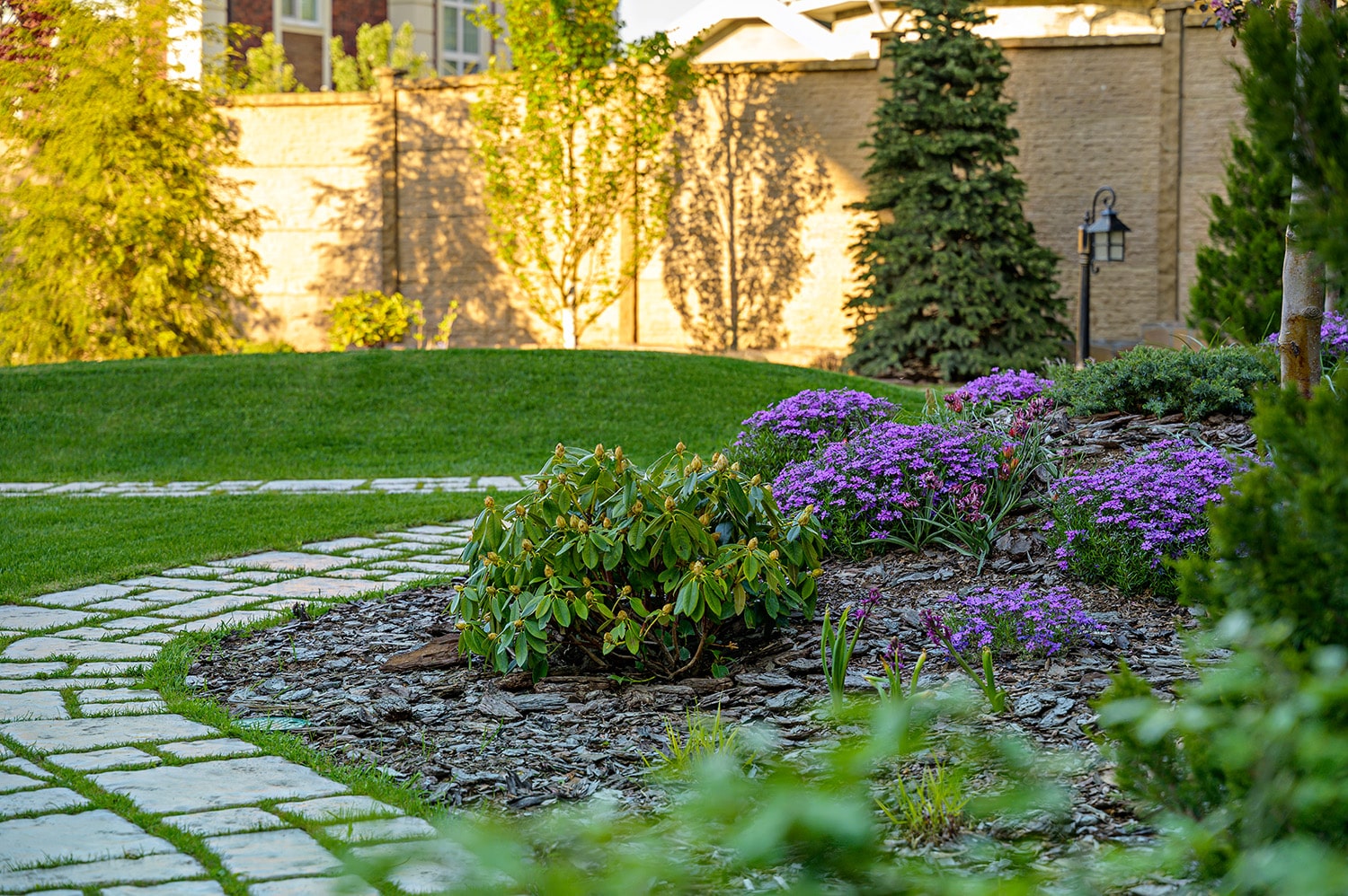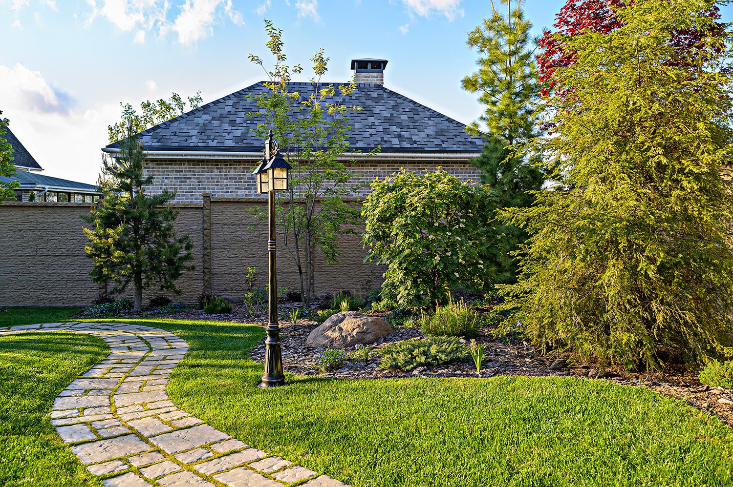 - Благодаря объёмному рельефу сад стал визуально просторнее, а ландшафт — живым и многослойным.